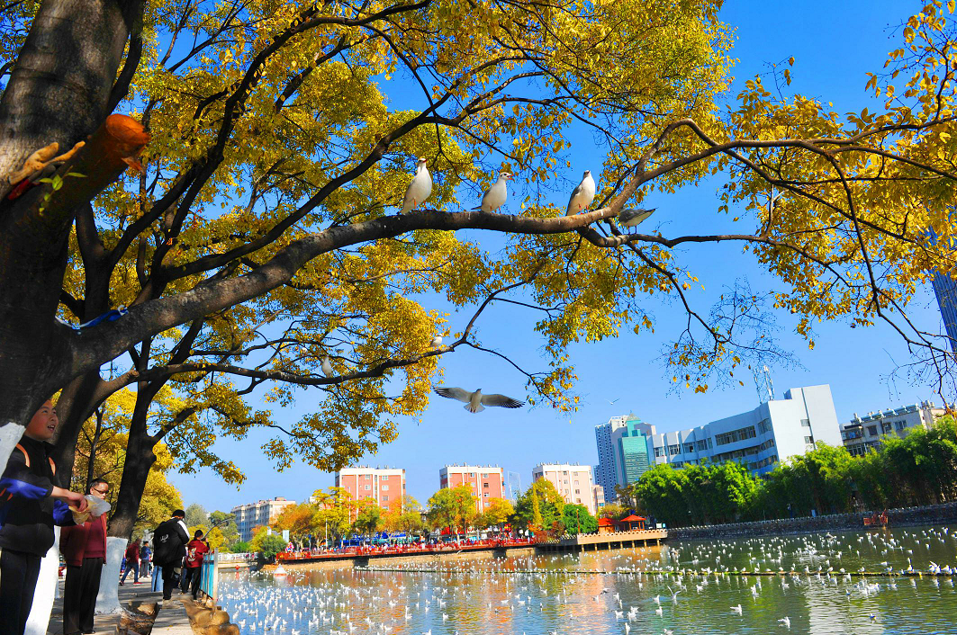 虽已过立冬,春城依旧色彩斑斓——滇池碧水倒映着湛蓝天空,滇池大坝上海鸥翱翔,湿地公园绿意盎然。不久后,还有红塔西路冬樱花盛开、黑龙潭公园“梅飞色舞”等景色,为昆明增添更绚丽的色彩。