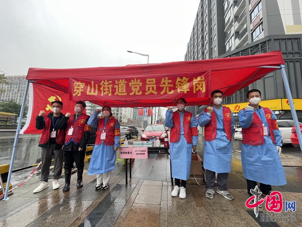 七星区穿山街道也在多个村委的重点防控点成立了临时党支部,在最关键的位置设立了党员先锋岗,党员带头开展疫情防控志愿服务。来自穿山村两名“50后”老党员,自发报名在抗疫一线开展疫情防控志愿工作,不顾恶劣天气帮助搬运居民生活必需品,为群众的健康日夜坚守岗位。