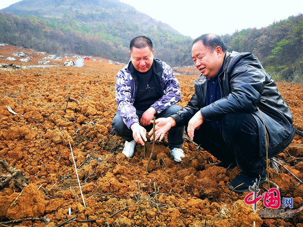 村民在查看种植的山苍子苗 陆仕臣 摄