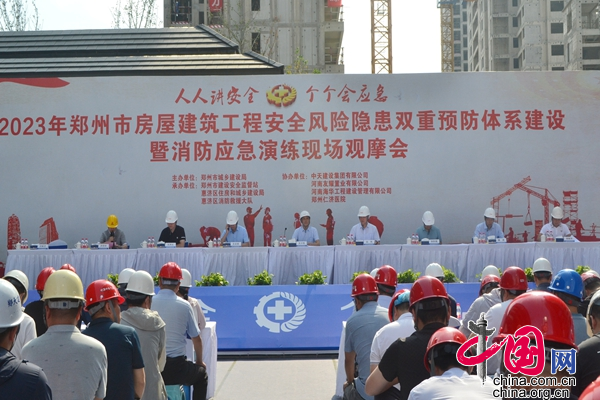 为进一步巩固提升全市房屋建筑和市政工程施工安全生产风险隐患双重预防体系建设成果,有效预防遏制生产安全事故发生,7月19日上午,由郑州市城乡建设局主办的郑州市房屋建筑工程安全风险隐患双重预防体系建设暨消防应急演练现场观摩会在中天建设集团第九建设公司承建的誉城七号院(二期)项目顺利召开。