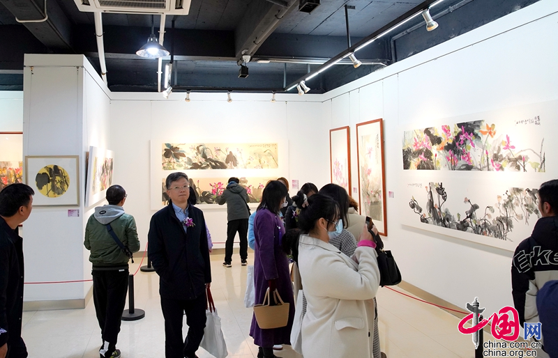 桂林电子科技大学艺术与设计学院武丹教授致答谢辞,并向桂林画院捐赠了作品《冰清玉洁》。随后,举行了“彩墨心莲·武丹中国画作品展”剪彩仪式。