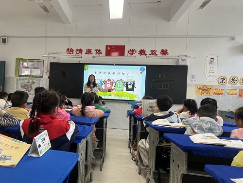 为了让同学们更多地了解垃圾分类知识,班级组织主题班会。在班会课上老师采用多渠道让学生了解垃圾分类重要性和方法。