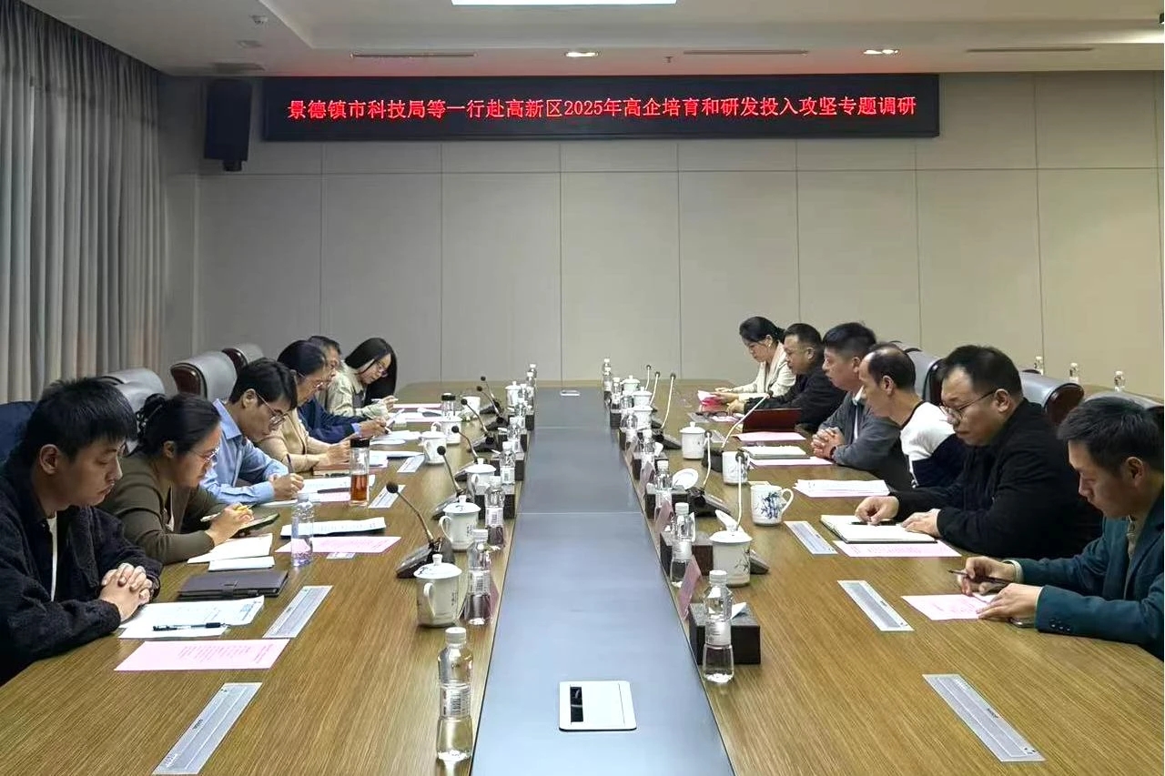 10月28日,江西省景德镇市科技局党组书记张爱芝率调研组一行来高新区调研高企培育和研发投入工作,市科技局党组成员、副局长董继革,市统计局二级调研员王选华参加调研,高新区领导汪湖陪同。
