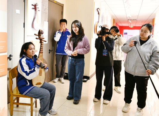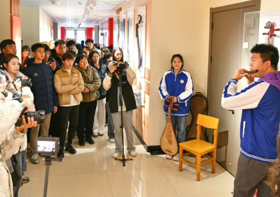 近日,山西师范大学音乐舞蹈综合楼内的“音乐思政教育体验区”,成为思政育人与艺术熏陶的生动课堂。李璿老师为体育学院大一新生解读《没有共产党就没有新中国》等经典乐曲的时代内涵,音乐学院学生则以琵琶演奏、笛声悠扬与傣族舞教学,让新生在沉浸式体验中感悟红色精神。