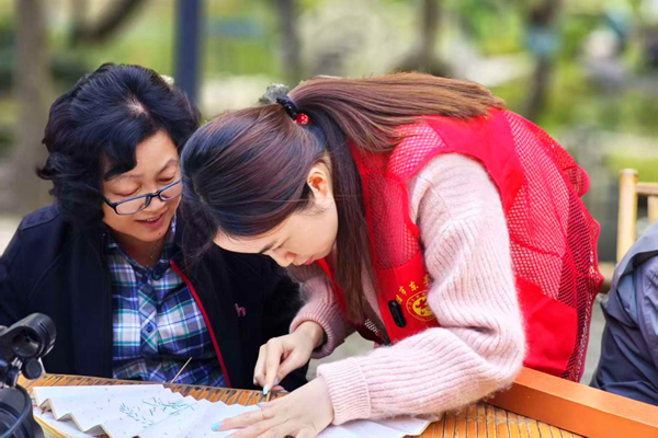 志愿者们通过精美的宣传折页和短视频,为上海客人们展开了一幅东亭的“康养画卷”。从蜿蜒的“竹乡画廊”旅游风景道,到秀美的东亭湖生态文化旅游区,再到世康世外桃源、乐府山庄等康养项目……东亭作为“长三角康养运动休闲示范基地”的活力与潜力,让在场的每一位宾客都心生向往。而从“心动”到“情动”,从一场指尖上的非遗体验开始。