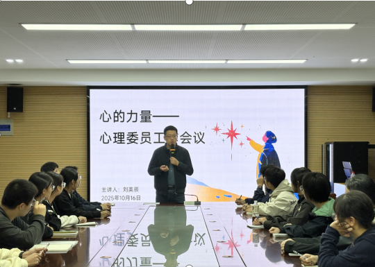 武剑副校长还对同学们提出三点期望:一是端正态度,正确看待工作性质;二是主动学习技能,提升服务能力;三是及时反馈特殊情况,同时在服务中保护自己、平衡学习与工作。紧接着,刘美辰老师以“心的力量”为主题,围绕“心理委员的角色定位,工作内容与方法”展开培训。在角色定位上,她先纠正了“只是偶尔聊天”“是老师的间谍”等认知偏差,明确心理委员的核心职责是为同学提供心理健康帮助、协助开展班级心理健康活动,并将角色概括为观察者、倾听者与支持者、助手。刘老师指出心理委员在工作内容上,需重点关注同学的学业压力、人际矛盾、情绪波动等常见问题,及时发现异常信号;在工作方法上,要遵循“主动关心—耐心倾听—及时报告”的流程,既不擅自给同学“贴心理标签”,也不独自承担超出能力范围的心理困扰解决任务。她强调心理委员的“自我关怀”,提醒大家守好边界,做好学生工作与个人生活的平衡。