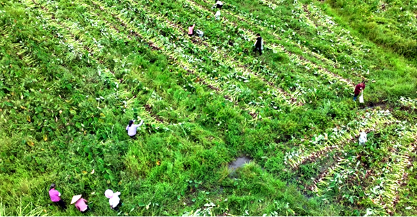 “得益于今年风调雨顺,助农政策持续落实,马岭镇2000多亩荔浦芋粉糯上市,地头价每公斤接近6元。”在广西荔浦市马岭镇新寨村百亩荔浦芋种植基地,莫家凯正与工人忙于采挖荔浦芋。霜降前后,荔浦市5万亩荔浦芋陆续上市,在荔浦广袤的大地上,芋农分工协作分拣、包装荔浦芋,开心地打包运输,田间地头一派热火朝天的丰收景象。