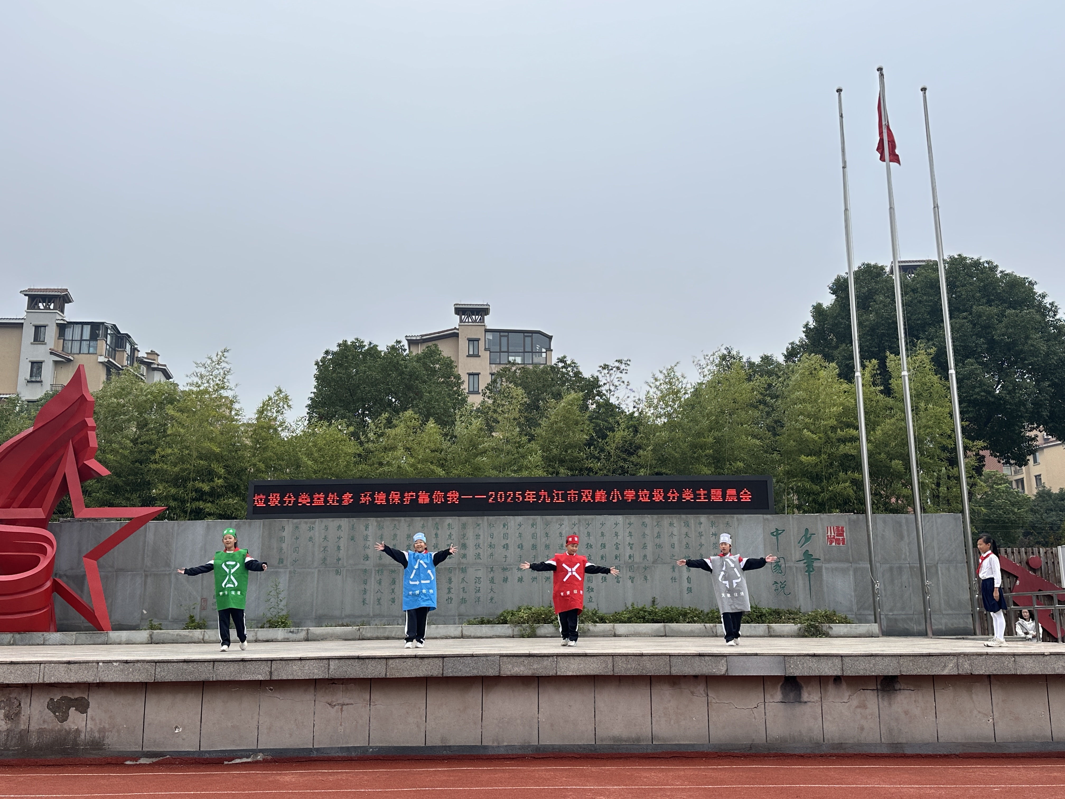 近日,九江市双峰小学五(10)班主持了一场以“垃圾分类益处多,环境保护靠你我”为主题的晨会活动,通过情景剧、手势舞等形式,向全校师生普及垃圾分类知识,倡导文明生活新风尚。
