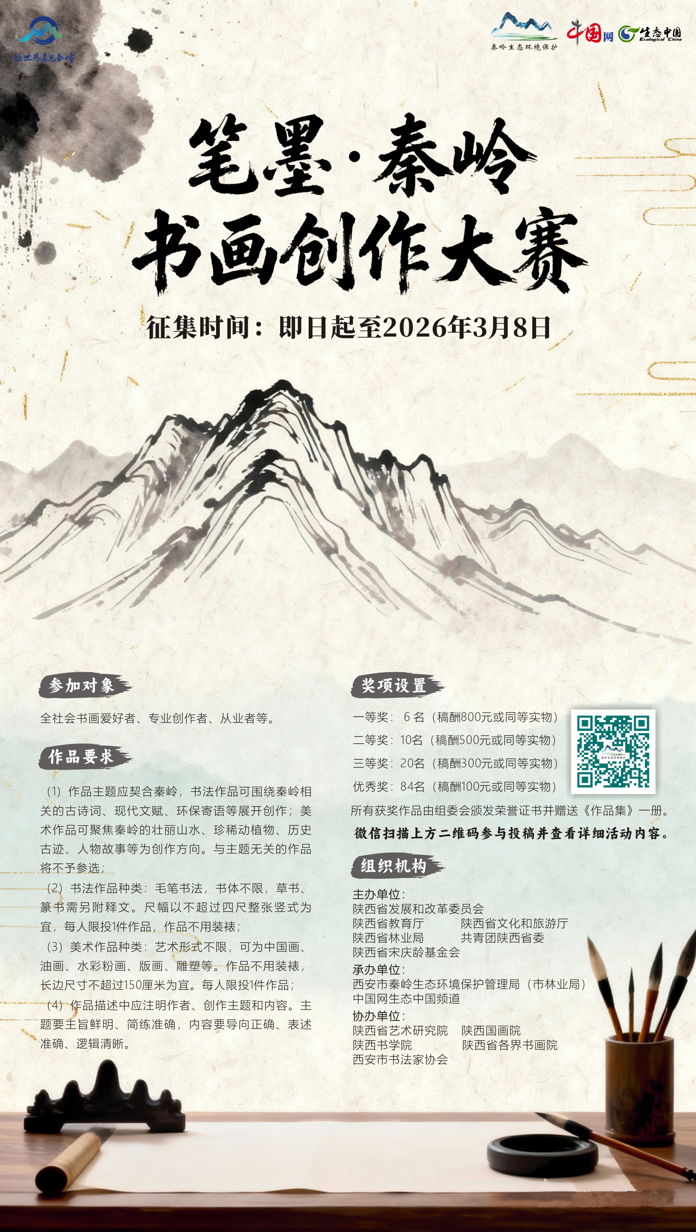 为深入贯彻党的二十大精神,进一步彰显秦岭保护工作的卓越成效,普及秦岭生态环境保护知识并引领广大群众全方位领略秦岭的自然美景、多角度感知秦岭的文化底蕴、深层次了解秦岭的保护现状,“让世界看见秦岭”——秦岭生态环境保护文化宣传系列活动(2025-2026)面向全社会征集秦岭主题作品。