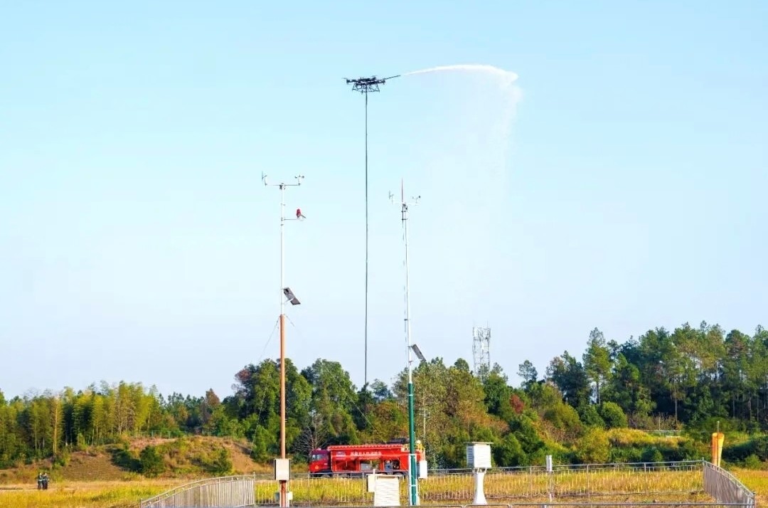 首次亮相动态飞行表演的系留无人机消防车。芦淞发布供图