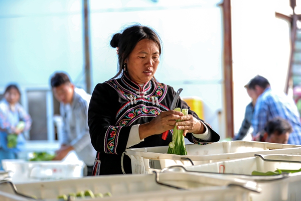 田间地头,村民们正抓紧晴好天气采收迟菜心。他们动作娴熟、配合有序,从采摘、分拣到装筐,确保每一棵菜心都鲜嫩饱满。这些青翠的菜心经过整理后,被迅速运往冷库保鲜处理。