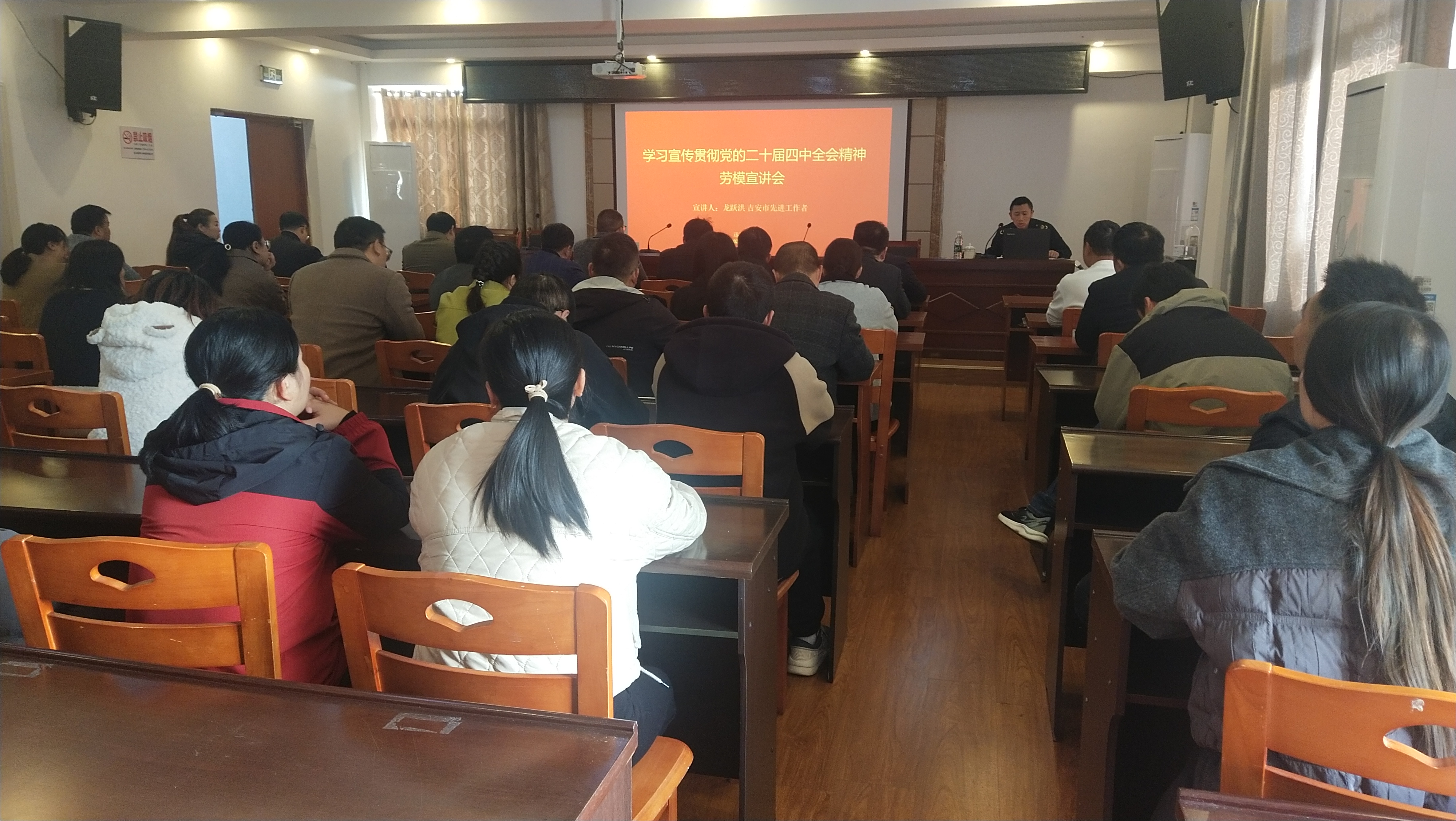 为深入学习贯彻党的二十届四中全会精神,进一步弘扬劳模精神、劳动精神、工匠精神,充分发挥先进模范人物的思想引领和典型示范作用,12月11日上午,江西省吉安市遂川县总工会在县源丰水务集团有限公司开展劳模宣讲党的二十届四中全会精神进企业活动,将党的创新理论与劳模的奋斗实践送进基层、送入企业。公司30余名一线职工聆听了宣讲。