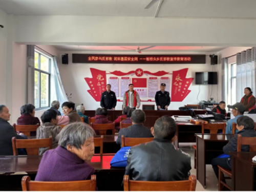 为进一步增强农村群众反邪教意识,筑牢基层反邪教思想防线,切实维护乡村社会和谐稳定。近日,安徽省宣城市绩溪县板桥头乡综治办联合乡司法所、派出所,深入辖区庙山村、中村等行政村开展“全民参与反邪教,筑牢基层安全网”主题宣传教育活动。
