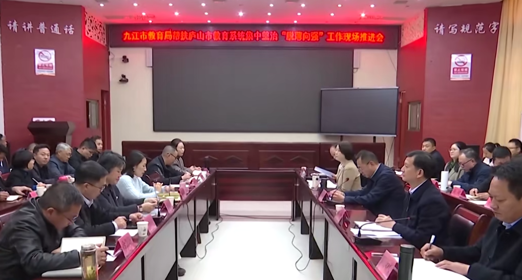近日,江西省九江市教育局帮扶庐山市教育系统集中整治“脱薄向强”工作推进会召开。九江市教育局党委书记、局长陈琪主持会议并讲话。