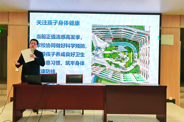 随后,庐阳高中党委委员、副校长武剑用“以爱为意,共育花开”为主题,作高一年级工作及后期规划专题汇报。汇报聚焦四大核心要点:一是家校同心,助力新生平稳度过初高中衔接适应期;二是呵护孩子身心全面成长,给予孩子高质量陪伴与试错空间;三是强化安全意识,家校共管校园、交通、居家安全,筑牢成长防护网;四是普及网络刷单、冒充亲友等反诈知识,守护财产安全。他的汇报为年级后期工作指明了清晰方向。
