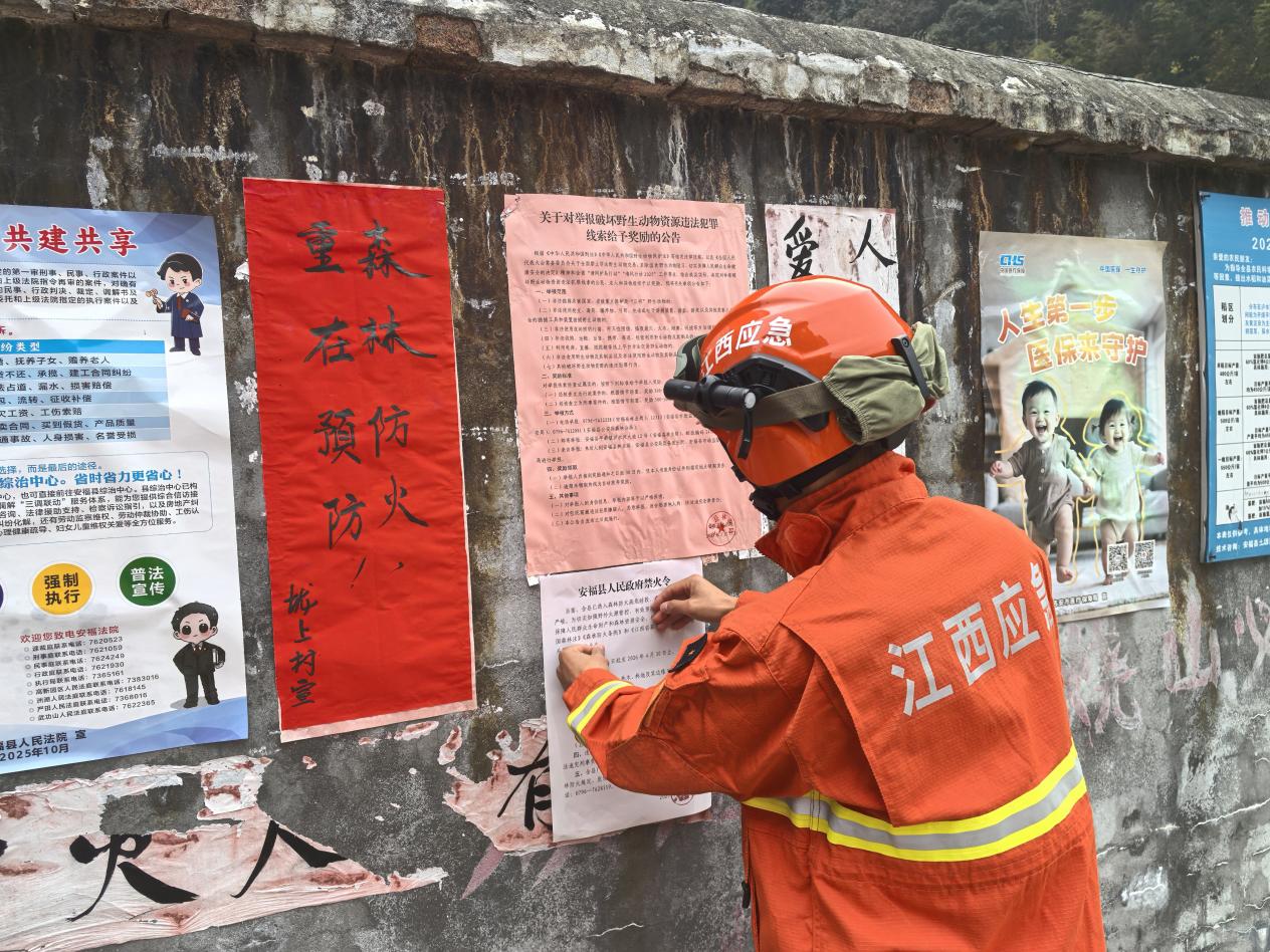 “您好,请先登记进山信息。近期天干物燥林区火险高,麻烦您配合一下。”清晨的坳上林场谷山分场山口,安福县专业森林消防大队队员身着标志性橙红色扑火服,动作娴熟地为进山村民登记信息。山口“进入林区,严禁烟火”的标语在晨光中格外醒目,这只是该大队日常防火工作的一个缩影。进入秋冬季,山林火险隐患持续升级,作为县域森林防火的核心力量,大队锚定“宣传+巡护”关键举措,密织森林安全防线。