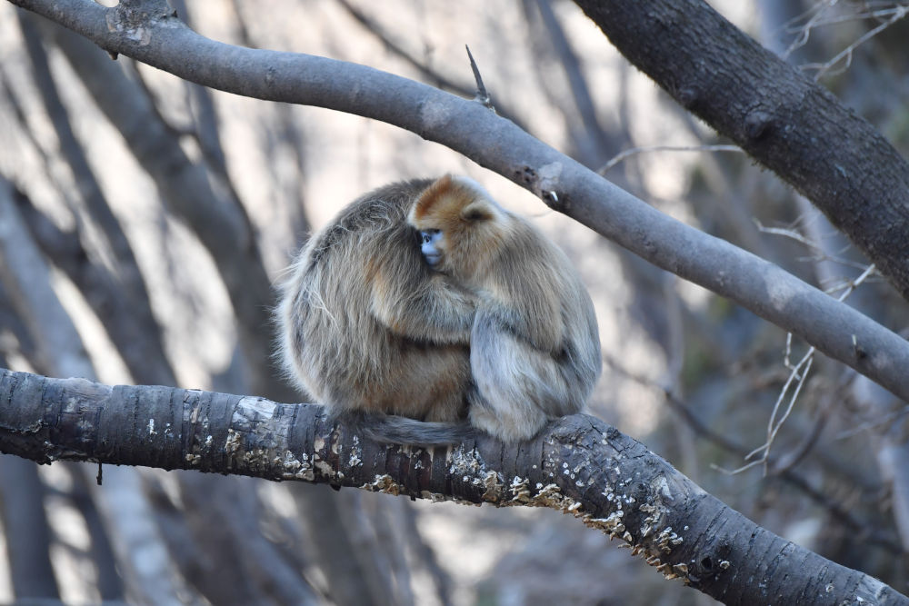 这是12月11日在陕西周至国家级自然保护区玉皇庙金丝猴监测基地拍摄的金丝猴。新华社记者邵瑞摄