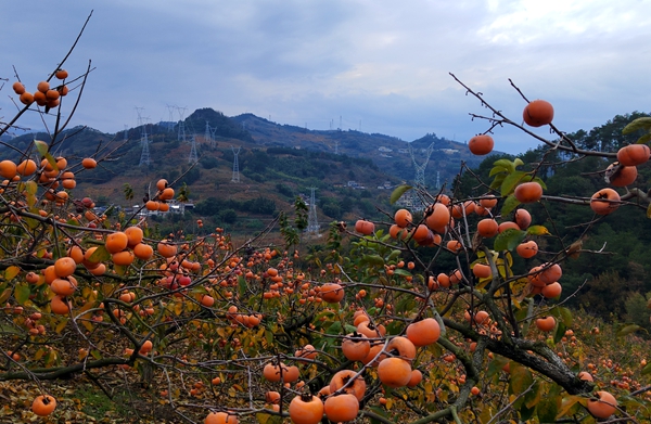 漫山遍野的柿子挂满枝头。涂昆/摄
