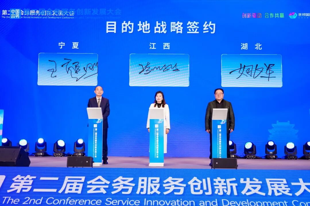 在合作签约环节,江西、宁夏、湖北三地代表达成目的地战略合作共识,开启了区域会展资源整合、优势互补的新篇章;会务服务创新发展联盟与多家优质酒店、相关服务机构分别签约,进一步完善了会务服务配套保障体系,为提升会务服务品质、推动行业标准化建设奠定了坚实基础。