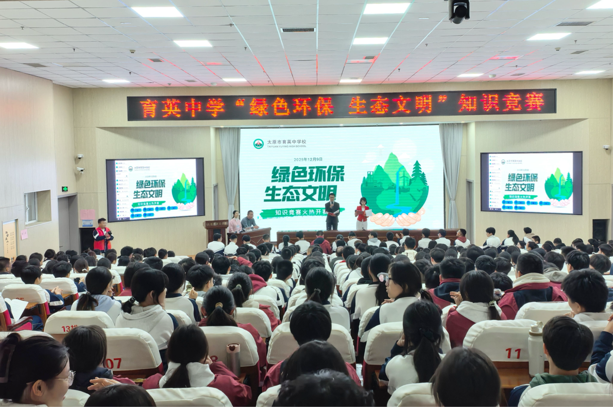 为厚植青少年生态文明理念,筑牢绿色环保意识,引导学子践行生态责任,山西省太原市育英中学校成功举办“绿色环保生态文明”知识竞赛。黄步选校长、许继生书记、齐向星副书记、石银萍副校长、胡建忠副校长莅临赛场观赛,为参赛选手加油鼓劲,共同见证学子们的精彩角逐。