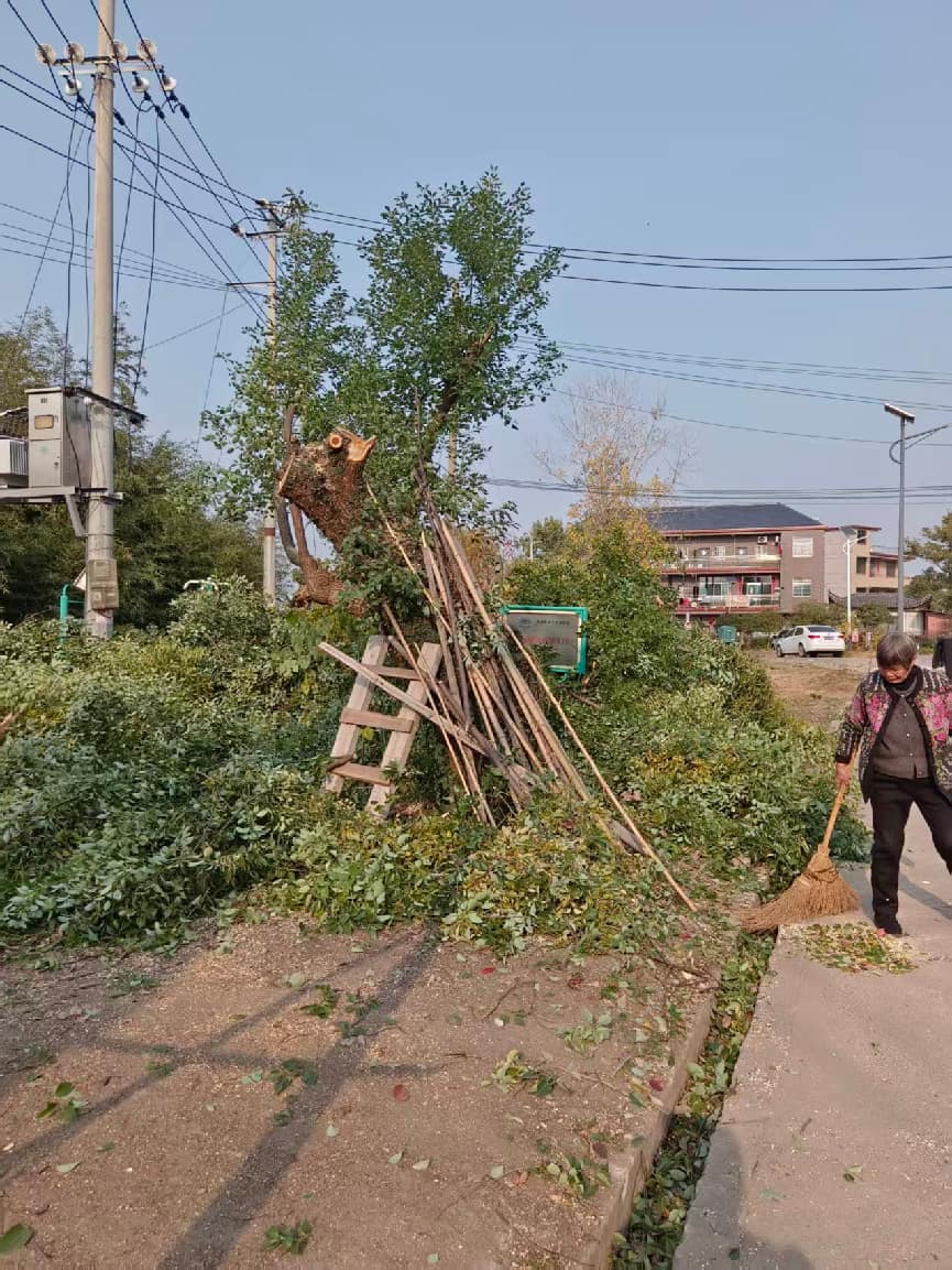 此外,针对倒塌及有隐患风险的树木,鱼山村委会组织专业队伍对其进行了锯断处理,并安排人员负责清运,既消除了安全隐患,又优化了辖区环境。
