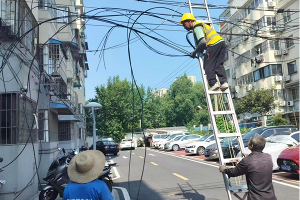 二、科学精细实施路径,把准治理“手术刀”。对整治“空中蜘蛛网”存在的涉及面广,专业技术性强的问题,必须科学谋定而后动、精准施策。全域摸排,因地制宜:工作启动之初,组织网格员和专业技术人员对小区线缆开展了“拉网式”排查,彻底厘清了线缆权属、走向与现状,建立了翔实的问题清单,专班以“统规统建、统一标准”的治理路径,制定“一区一策”方案,围绕“清理废线、归并散线、捆扎主线、入地优先”的原则进行清理,最大限度实现空间净化。闭环管理,确保长效:街道结合规划需要和城市精细化管理的工作要求,致力于构建“发现—反馈—整治—验收”的闭环管理机制。并发动网格管理和群众参与,以线上微信群、线下巡查等方式,共同监督防止乱拉乱接现象“回潮”,确保整治成果常态长效。