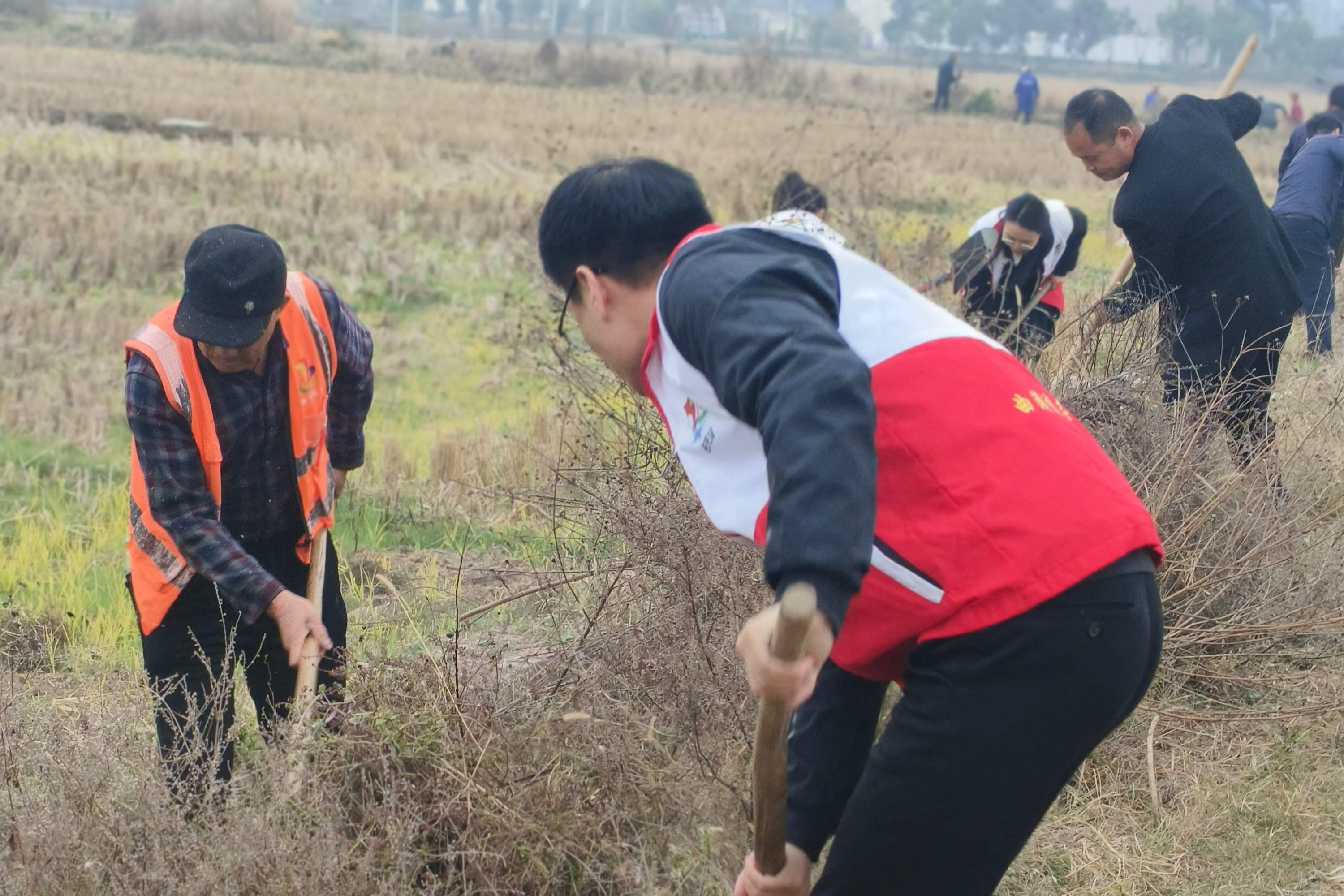 在长乐村磨盘新村6组高标准农田里,曲濑镇党政主要负责同志带头示范,镇村党员干部与群众一道,挥舞铁锹、镰刀对机耕道半人高的杂草枯枝进行清理,对沟渠内的泥土垃圾进行铲除,与在场群众配合默契,不一会儿清理出来的杂草就堆成了一座座小山。劳动中,党员干部与在场群众交流请教,问计于民、问需于民,以实际行动打通农田灌溉“生命线”、回应群众急难愁盼事。“吉先锋”红马甲,成为秋冬萧瑟枯黄中最靓丽的一抹红。