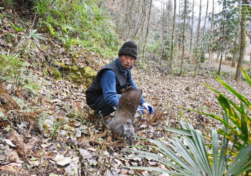 近日,在陕西汉中,宁强县林业局干部驱车25公里,赶到铁锁关镇周家坎村村民李映安家,对一只受伤的国家一级保护野生动物林麝进行了伤情检查,符合放生条件。随即,他们来到一个山脚下,将林麝放归山林。