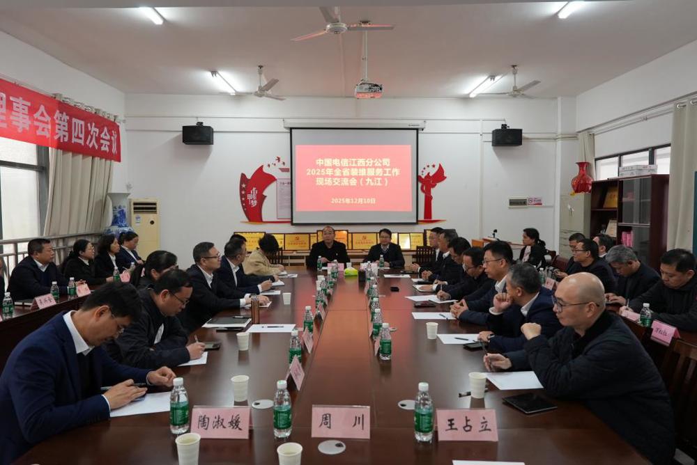 12月10日,中国电信江西分公司2025年全省装维服务工作现场交流会在九江职大召开。智慧物联现场工程师学院理事会常务副理事长、中国电信江西分公司客支中心主任朱圣林带队,全省11个地市分公司副总经理、客支中心主任及部分县区分公司副总经理共30余人出席会议。九江职大信息工程学院党总支书记张先成、产教融合中心主任肖燕、信息工程学院行政负责人主福洋等参加。