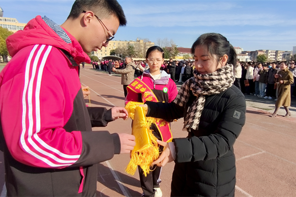 颁奖前,陈琳主任通报多项重磅喜讯:2025年全国青少年科技教育创新成果大赛中,该校物理教师周兰保深耕科技教育四十余载,斩获“科技教育工作者赛道一等奖”“熊友濂优秀科技教师专项奖”两项国家级大奖,彰显教师队伍过硬素养;集团整合谷阳、南城两校区精锐组建田径队,代表固镇县征战蚌埠市中学生田径运动会,男子组勇夺团体冠军,女子组跻身第九;县级机器人大赛中,学校实力领跑,包揽一、二、三等奖;淮三角质量调研里,全校学子奋勇争先,涌现大批优秀个人与班集体。随后,陈琳主任宣读表彰名单,校长杨蕾蕾及各位学校领导为获奖师生及班集体颁奖,现场掌声阵阵。