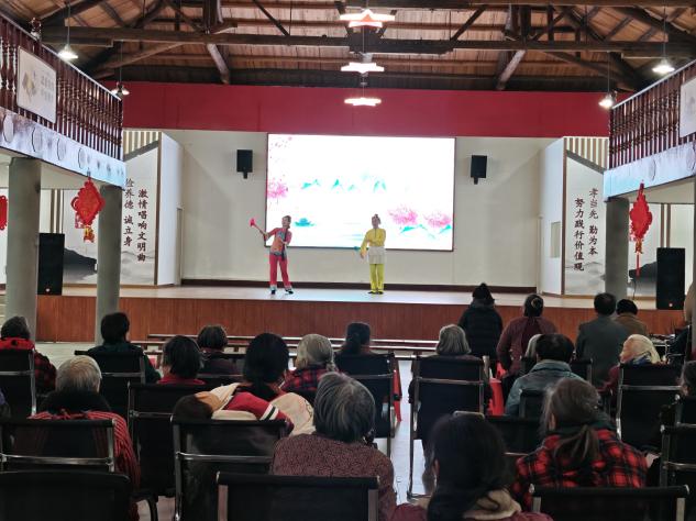 新风拂面,共建文明家园。“移风易俗破陋习,文明新风润万家。”伴随着清脆快板的节奏,一幅文明新风的生动画卷在缓缓展开。近年来,高额彩礼“降温”了,婚丧嫁娶的酒席简化了,村居环境越来越美了,邻里互助、人心向善的氛围更暖了……轻快的演出将这些看得见、摸得着的新变化鲜活呈现,在党员群众感慨变化来之不易的同时也提醒大家要共同参与和自觉践行。《好山好水好年头》、采茶小调《铜钱歌》以动人的歌声、亲切的旋律,唱出了群众对脚下这片“好山好水”的赞美,更抒发了在党的领导下,日子越过越红火、生活越来越兴旺的喜悦与自豪。