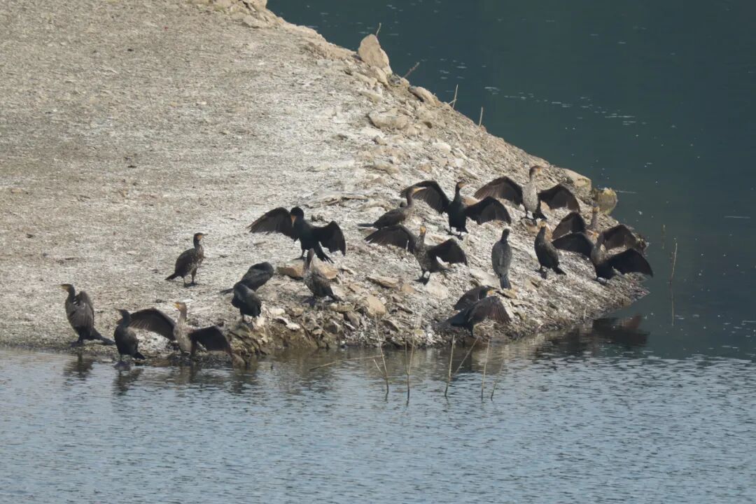 观察还发现,伴随黑颈鸬鹚一同栖息的,还有白鹭、苍鹭等多种涉禽。这些候鸟的驻足停歇,进一步印证了水库水体清澈、鱼类资源丰富、生态系统完整的良好状况。
