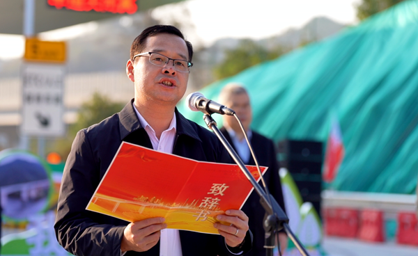 中交路建党委副书记、总经理刘章瑜在通车仪式上致辞。