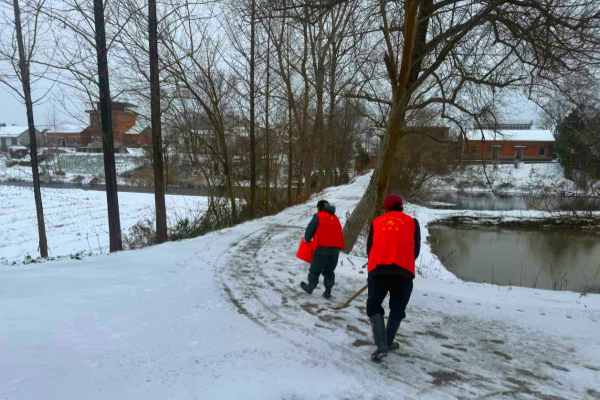 风雪无阻齐上阵,铲雪护路保民安。清晨的义圩村寒风刺骨,雪花纷飞,村内主干道上却涌动着热火朝天的劳动热潮。由村“两委”干部带头,党员、“两长”及志愿者组成的“冬季护行志愿队”闻令而动,手持铁锹、竹扫帚迅速集结,全力投入铲雪除冰工作。大家分工协作、默契配合,年轻党员冲锋在前,奋力铲除路面凝结的硬冰;村“两委”干部带队攻坚,重点清扫主干道斜坡、路口等易滑路段。“雪天路滑,得赶紧把路清出来,让大家出门放心!”村党支部书记耿旭东顶风冒雪、率先垂范,带领大家埋头苦干。一双双手冻得僵硬通红,却没人停下手中的动作。经过数小时奋战,村内主干道、重点路段的积雪积冰被彻底清理干净,一条平坦畅通的“安全路”延伸至村居各个角落,赢得了过往村民的一致好评。