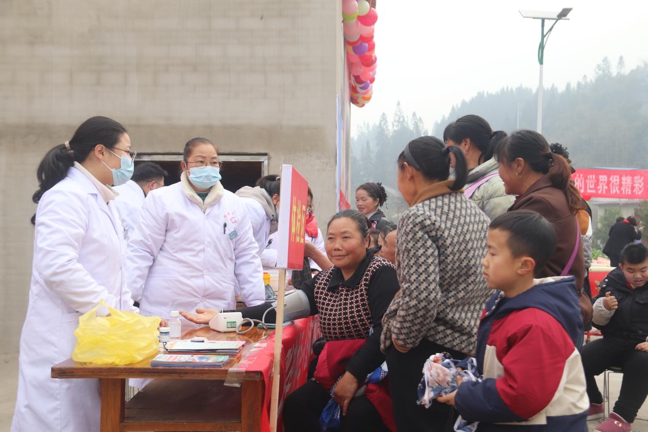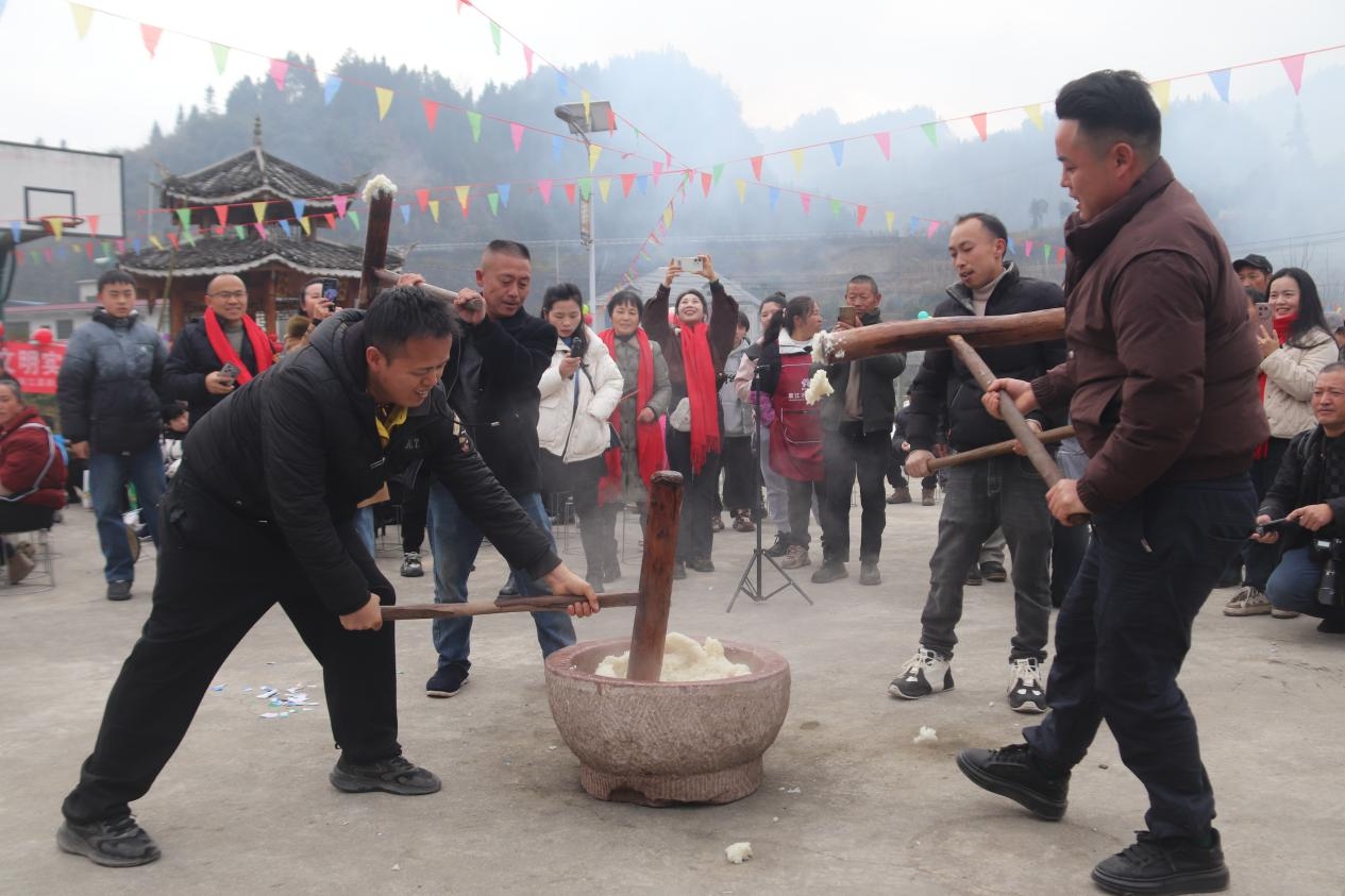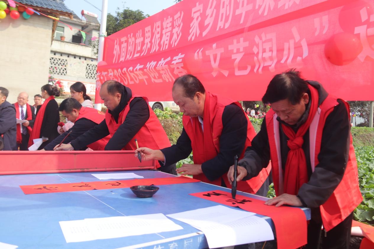 文化广场上,长桌连排,宛如一座“幸福驿站”:木槌起落,糯米飘香,孩子们围着石臼看大人打年粑;书法家挥毫落纸,一副副春联墨迹未干,就被乡亲们欣然领走;工作人员送来精美挂历,吉祥图案映亮张张笑脸;医护人员轻声细语,为老人量血压、话健康。理发师推剪轻舞,为老人孩童理出新春气象;摄影师快门频按,定格下一张张淳朴笑脸,现场冲印装裱,将照片郑重递到乡亲手中。
