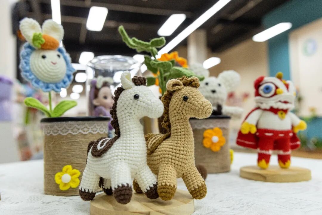 “我们推出了几款新年元素和马生肖元素的产品,比如小马挂件,醒狮头玩偶等,目前还在赶制60双拖鞋和60对小马挂件,这些产品深受消费者们的喜欢,卖得也比较好,我们手工编织队的队员们也在加班加点地赶货中。”联山街道手工编织队队长陈荣美说。